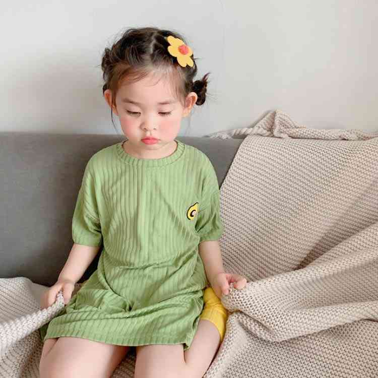 送料無料 パジャマ キッズ ワンピース 女の子 ルームウェア 子供服 部屋着 寝間着 Tシャツワンピース ガールズ クルーネック 半袖 薄手 柄 可愛い 夏着 韓国